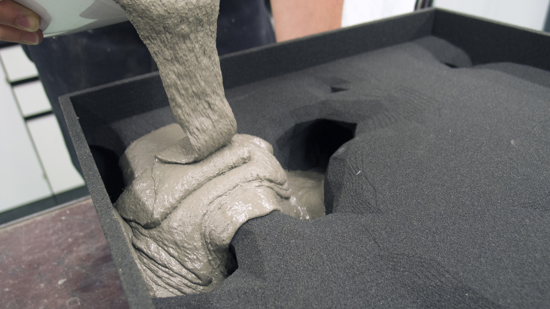 The project demonstrates a hybrid fabrication process in which a precious, smart fabrication process is used minimally, only where necessary, while the structural performance is provided by concrete, which is cast in a conventional manner. Digital fabrication is only used to produce a minor proportion of the final product, but has a major impact on its performance and behaviour.